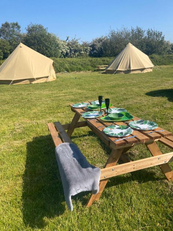 Each Bell tent is equipped with cosy rugs, raised beds and Indian lanterns. At Solent Glamping we pride ourselves on being unique; each tent is furnished with the highest quality items bringing optimum comfort to your stay, and have low level lighting. All guests will need to bring their own sleeping bags/ bedding. If guests wish to cook meals during their stay they will need to bring a barbeque/ camping stove in addition to all cooking utensils and crockery. The bell tents do not have an electrical socket so we would advise guests to bring portable battery packs to charge phones etc. and torches to help find their way at night.